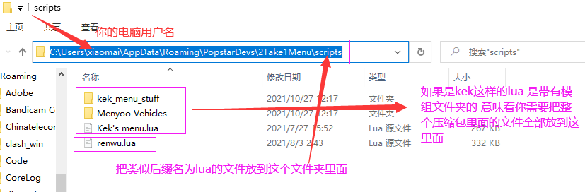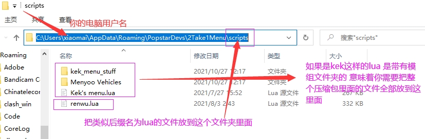 使用WIN+R 输入 %AppData%\PopstarDevs\2Take1Menu\scripts