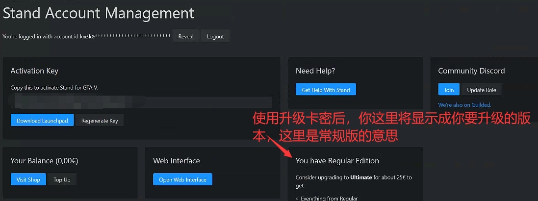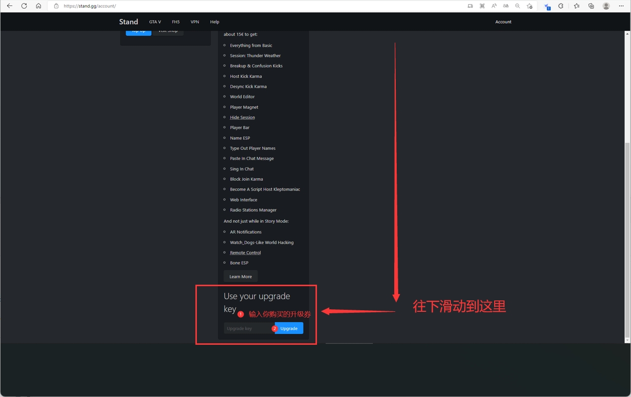 下图要输入的卡密形式为:Stand-Upgrade-XXXXXXXXXXXXXXXXXX