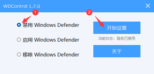 之后就可以运行 WD Control 禁用自带杀软了