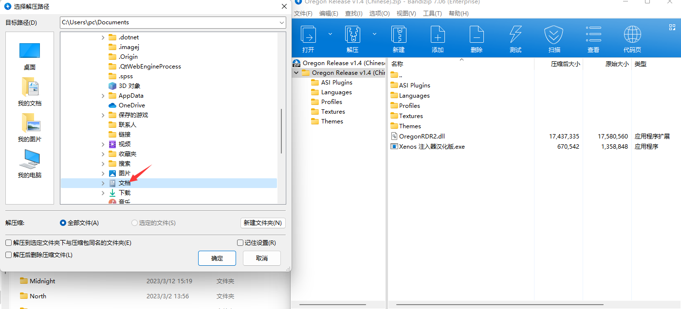 把这个压缩包解压C盘\文档中 如图