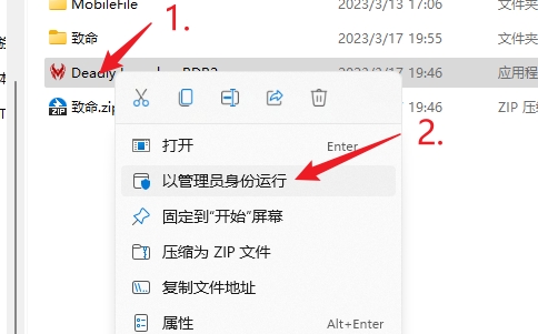 然后右键以管理员身份运行 解压出来的Deadly Launcher RDR2